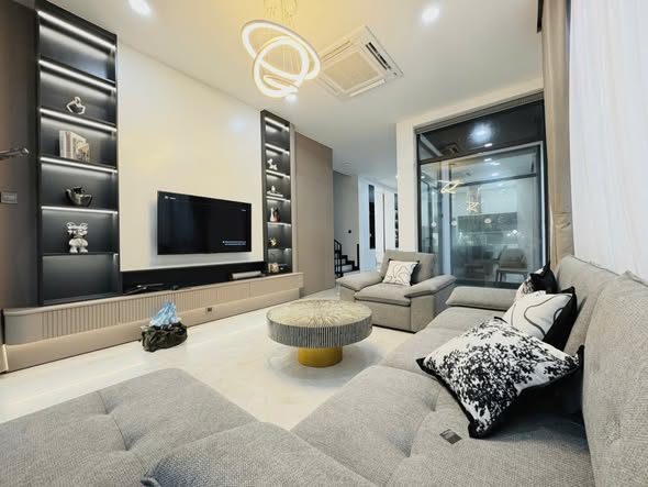 This beautiful modern villa features 5 ensuite bedrooms, a bright living room with kitchen, separate working room, and spacious outdoor areas including a large front yard and garage. The property is fully furnished with premium appliances including TV, refrigerator, washer/dryer, oven, dishwasher, and air conditioning throughout. Located just 10 minutes from My Khe Beach, this villa offers luxurious living in a prime Da Nang location.